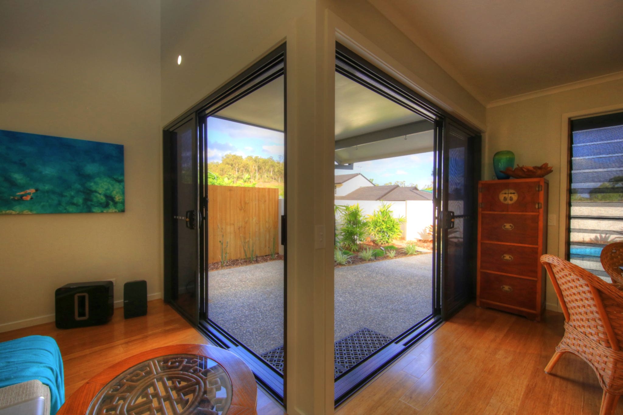 Our stacking door systems allow 2 doors to slide across to stack onto a third fixed door. There is the option of either two, three, four or six door combinations which ensures suitability for a huge variety of spaces and different project applications. Just as popular or suitable for a commercial cafรฉ as they are in a home living room. Precision Doors & Windows are able to supply and install either aluminium or timber stacking doors for commercial or residential projects, complete with high quality fittings and fixtures to ensure long lasting durability and performance.